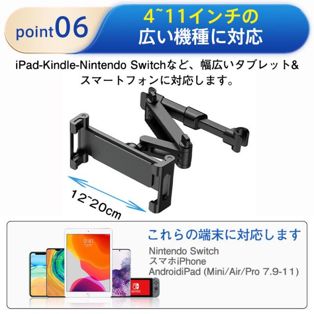タブレットホルダー 車載 車載ホルダー iPad 後部座席 ヘッドレスト 車 車載用 スマホ タブレット スマホホルダー ホルダー 伸縮アー 子供
