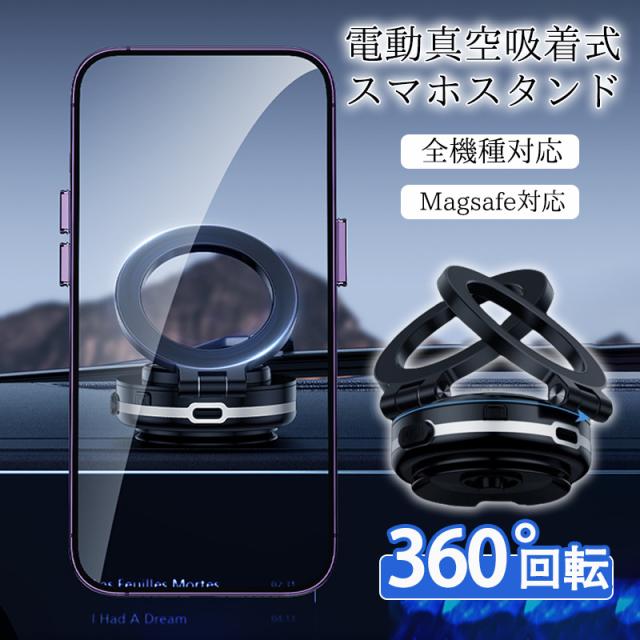 スマホスタンド 車載ホルダー 車載 車 スマホホルダー マグネット式 360度回転 magsafe式 電動真空吸着式 角度調節 車載 超吸着力
