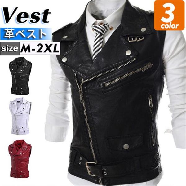ライダースベスト メンズ レザーベスト 皮ベスト ジレ チョッキ ノースリーブ レザー バイク 大きいサイズ 防水 おしゃれ かっこいい