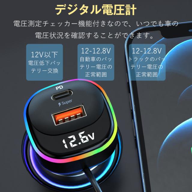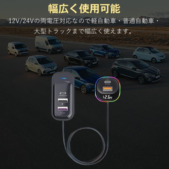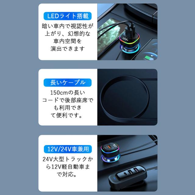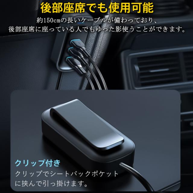 シガーソケット カーチャージャー 車 充電器 巻き取り 車 車載充電器 巻き取り式 ケーブル 4ポート USB iPhone Android Type-C Lightning 5台同時に充電 スマホ スマートフォン スマート充電 USB-C Galaxy S22 S21 iPad PD iPhone 15 14 13 12 巻き取り式 12V車 24V車 シガーチャージャー USBポート付 リールタイプ 後部座席 電圧計