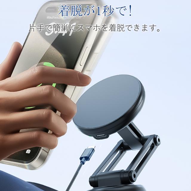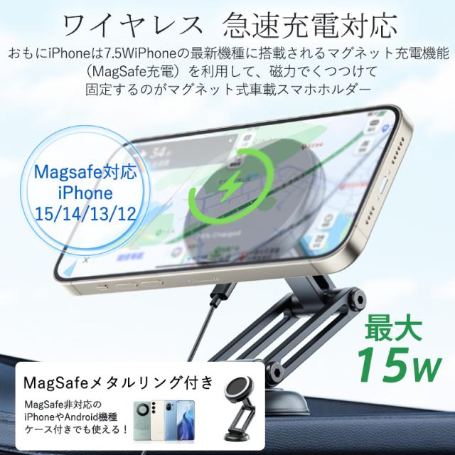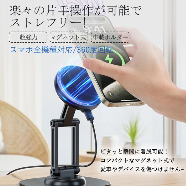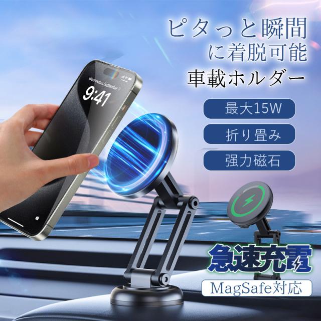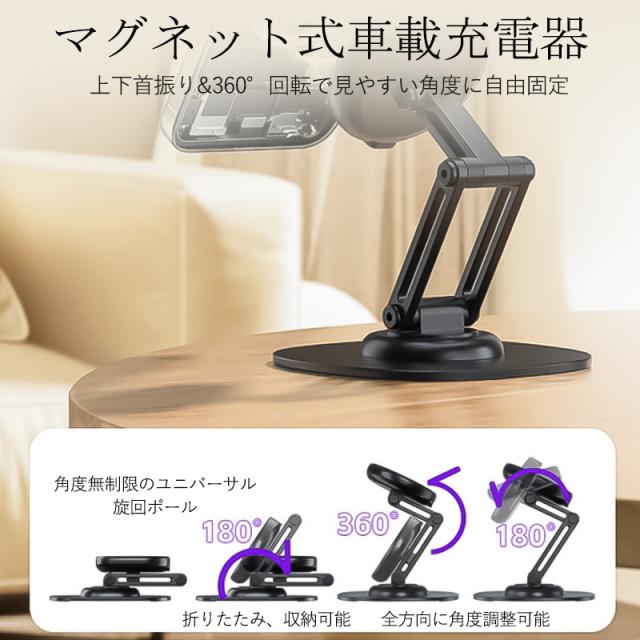 車載ホルダー 車 スマホホルダー マグネット magsafe 磁石 車載充電器 ワイヤレス充電器 急速充電 15w 360°回転 携帯スタンド