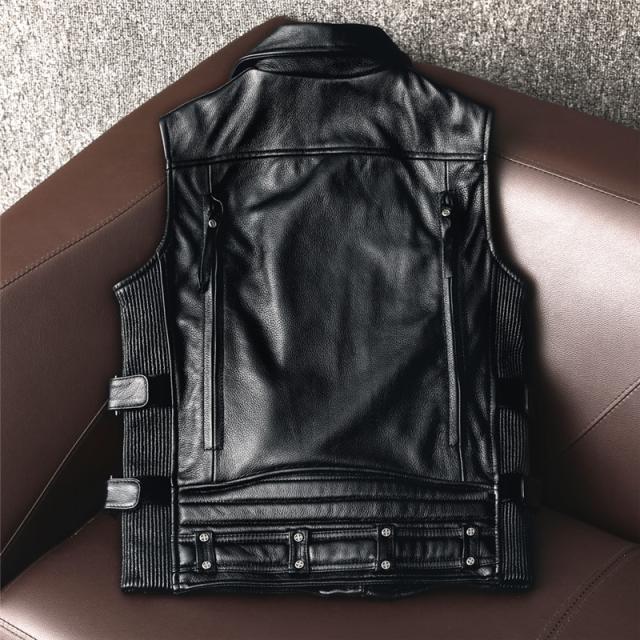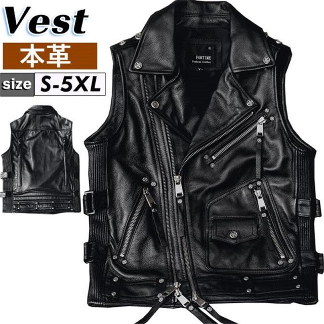 ライダースベスト メンズ バイクベスト レザーベスト 本革 皮ベスト ジレ チョッキ ノースリーブ レザー バイク 防水 かっこいい フォーマル