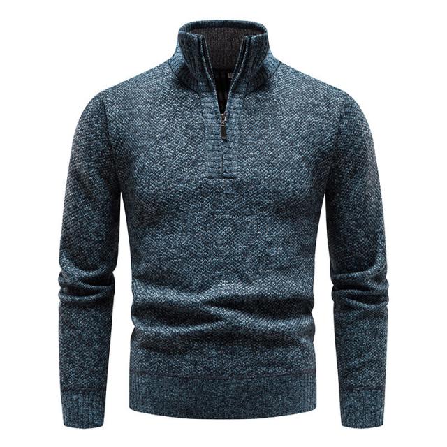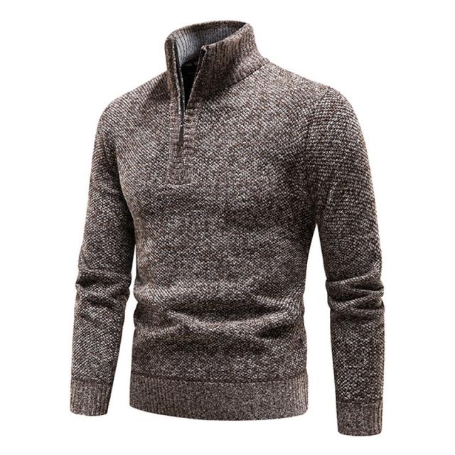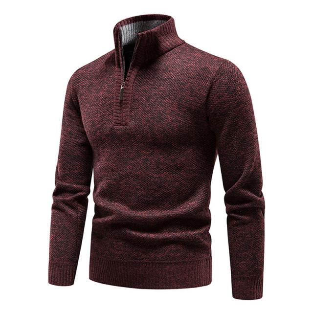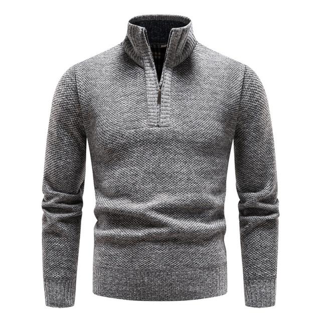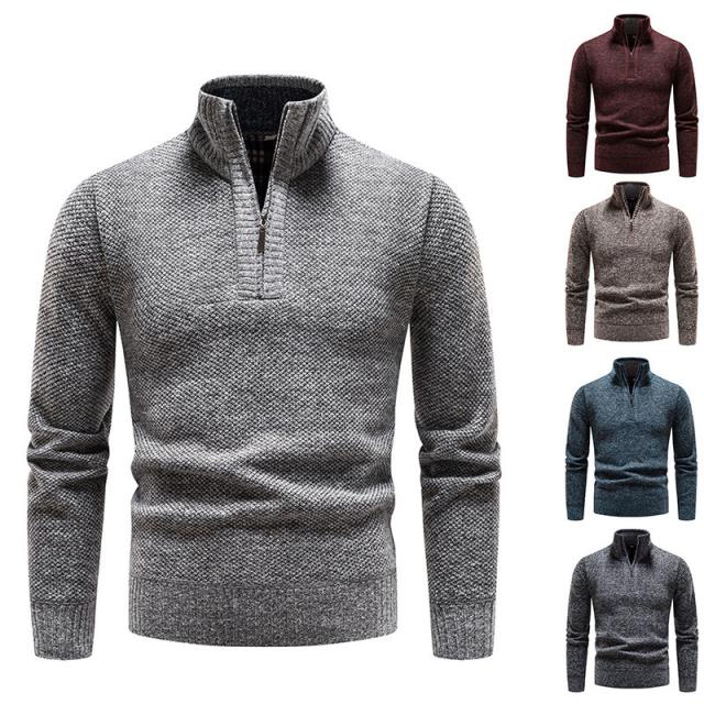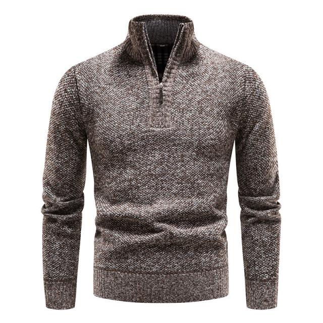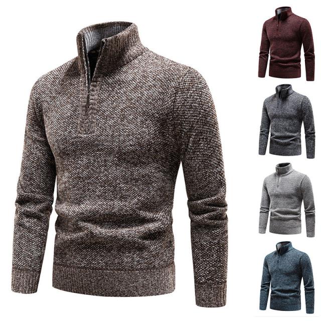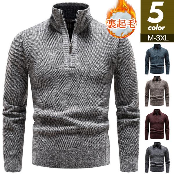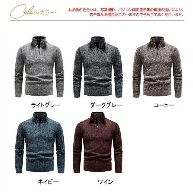 【24H限定!10%OFF!】ニットセーター メンズ 裏起毛 ハイネック 立ち襟 長袖 ハーフジップ トップス 秋冬 厚手 ゴルフウェア 防寒 暖かい あったか