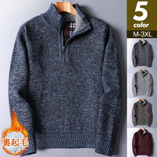 ゴルフウェア ポロシャツ メンズ ニットセーター ゴルフセーター 裏起毛 ハイネック タートルネック 長袖 ハーフジップ トップス シンプル 無地 秋冬 ゴルフ