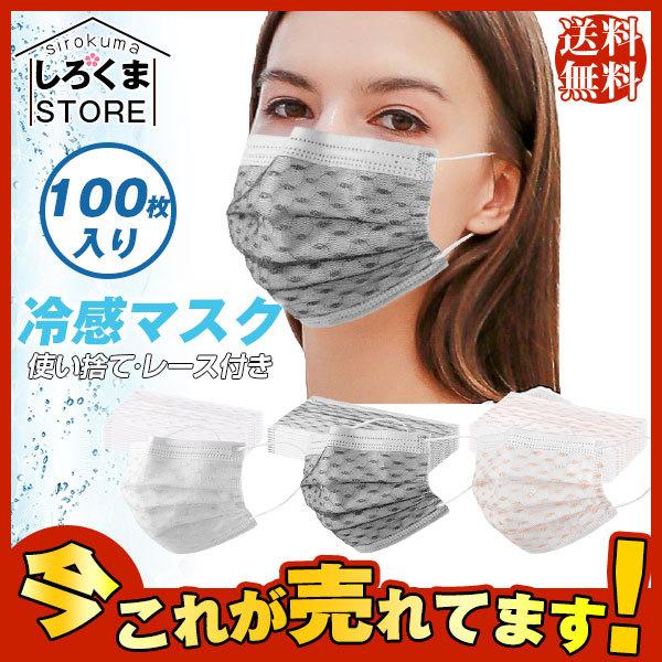 【キーワード】送料無料 冷感マスク 使い捨てマスク レース付き 100枚セット 冷感マスク レースマスク 冷感 フィルター ワイヤー入り 不織布マスク 大人用