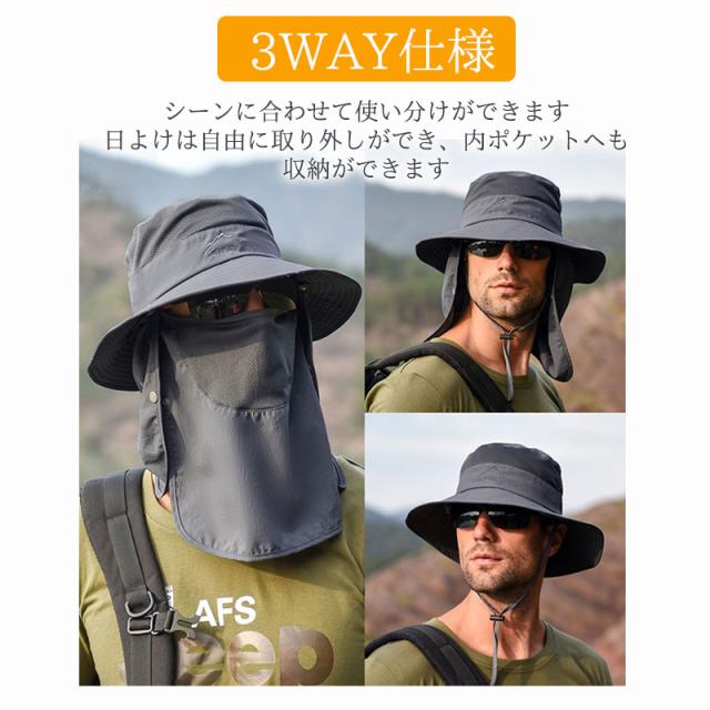 【当日発送】サファリーハット 帽子 メンズ 日よけ UVカット 紫外線対策 花粉症 あご紐 飛ばない 折りたたみ 日焼け防止 釣り庭仕事 園芸 農作業用 男女兼用