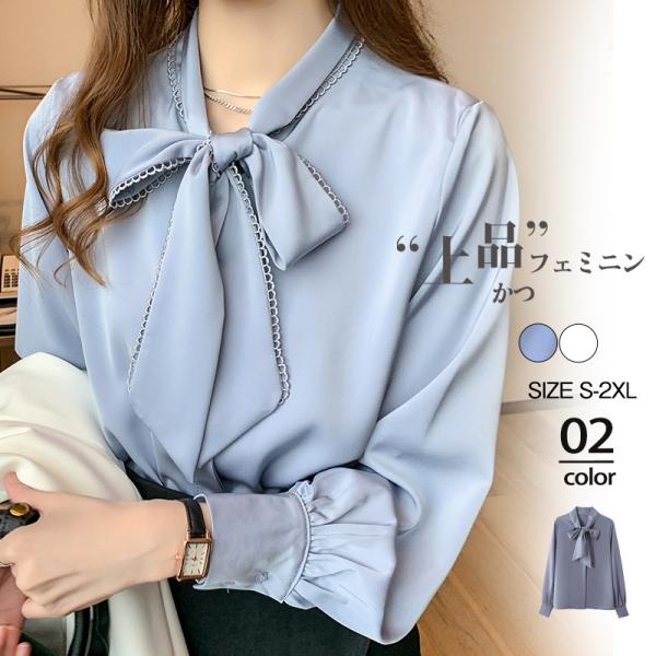 ブラウス レディース シャツ 長袖 ボウタイシャツ ボウタイブラウス フォーマル シフォン リボンタイ 卒園式 入園式 入学式 卒業 結婚式