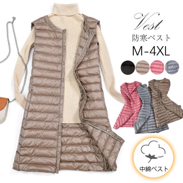 中綿ベスト レディース ダウンベスト ロングベスト 秋冬 ベスト 防寒ベスト 薄手 軽量 あったか チョッキ ジレ アウター ゆったり 秋冬 防寒