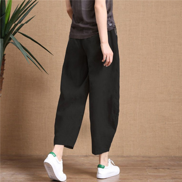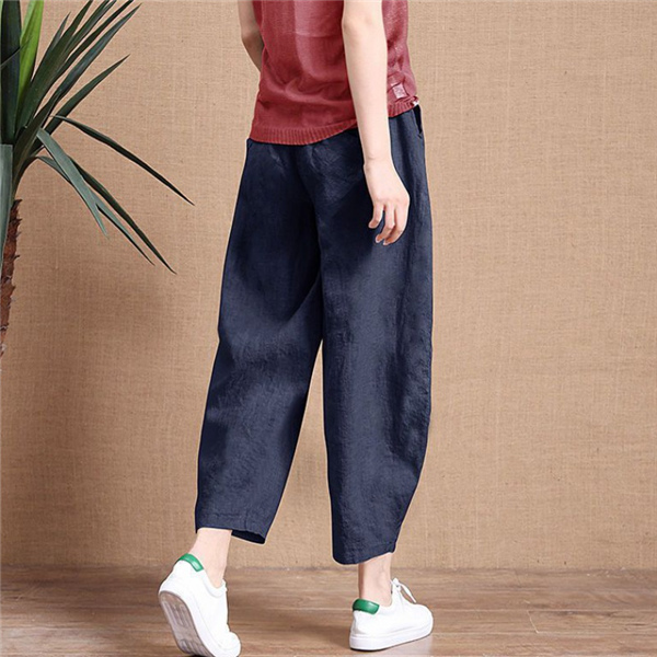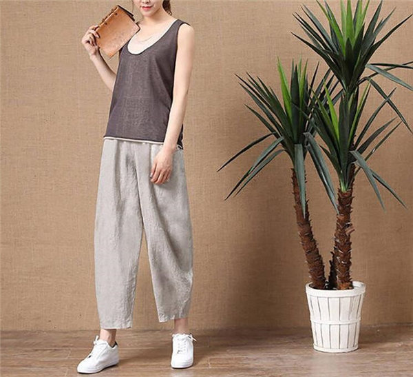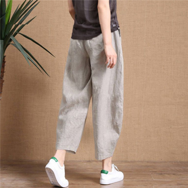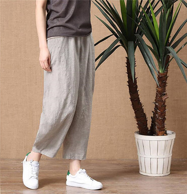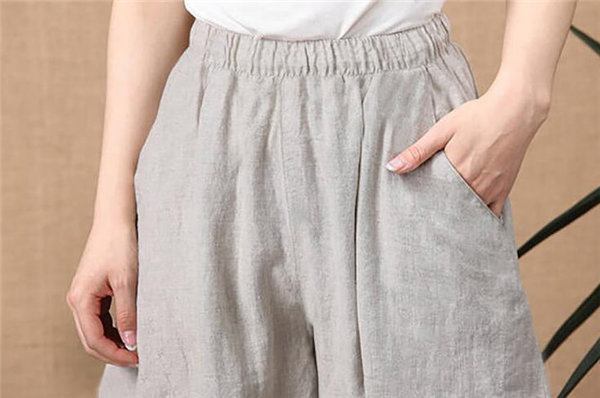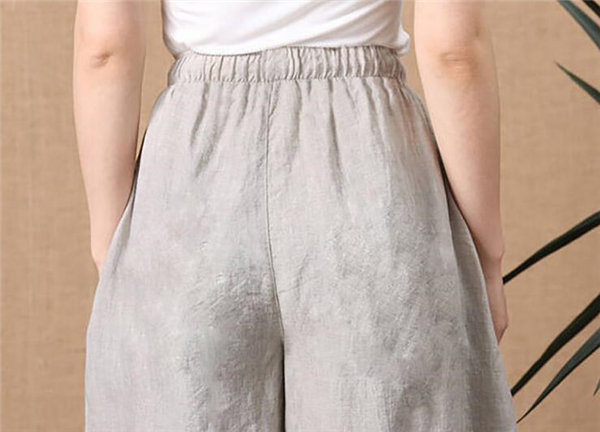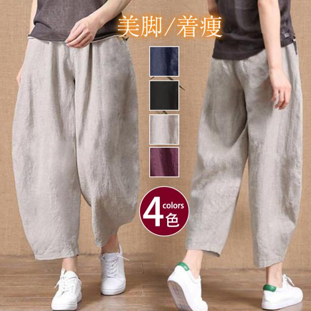 一部即日発送 ワイドパンツ レディース ガウチョパンツ リネン ウェストゴム 美脚 9分丈 無地 ゆったり 着痩 麻混 春夏 快適 体型カバー