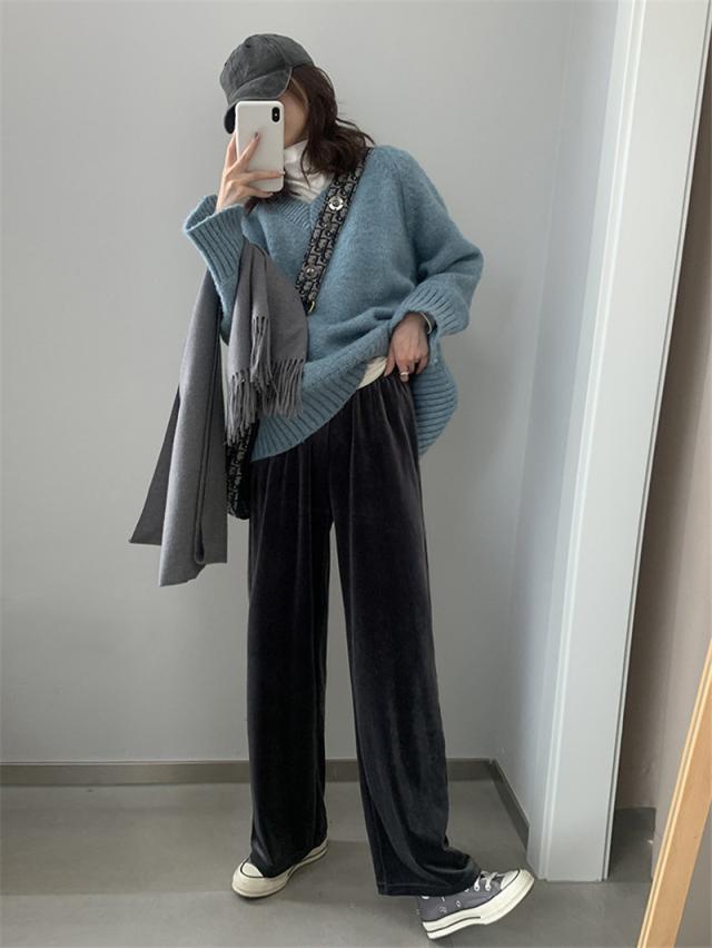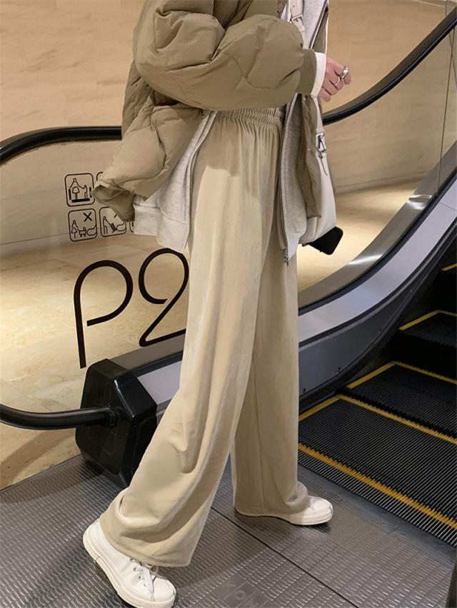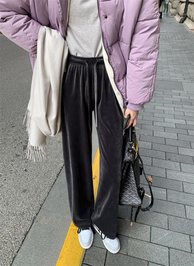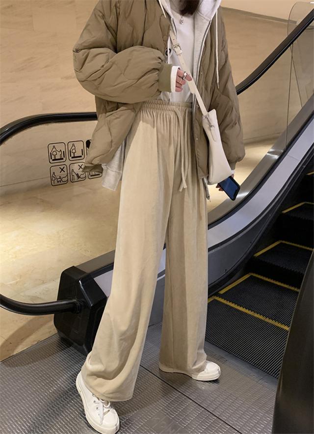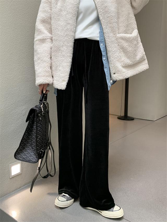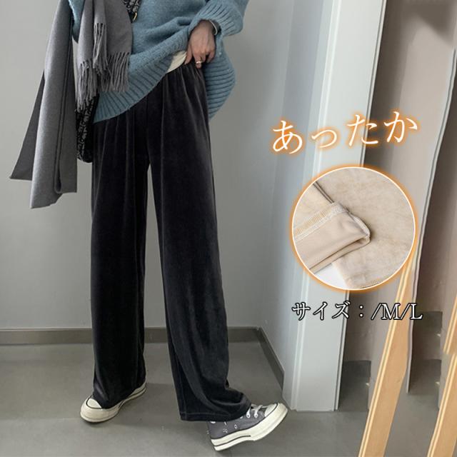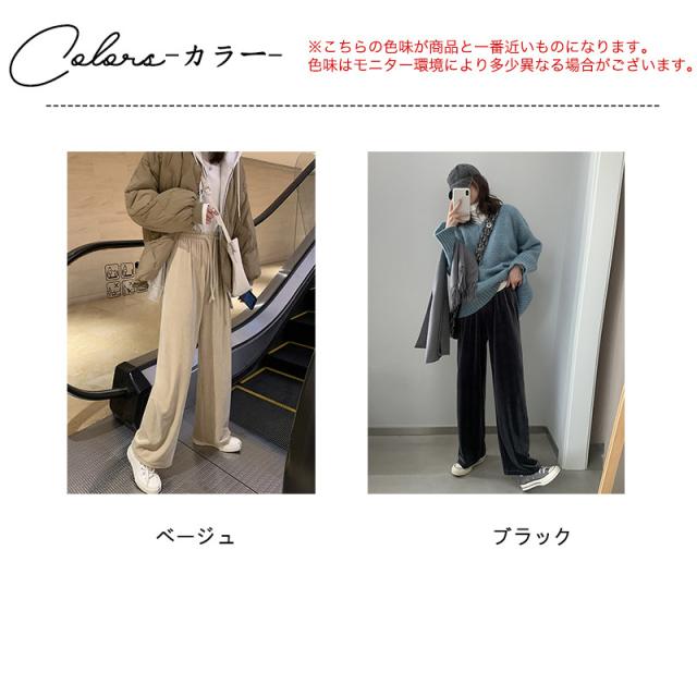 ワイドパンツ レディース ベロアタッチ ガウチョパンツ ガウチョ ボトムス ストレッチ ウエストゴム ロングパンツ カジュアル風 体型カバー