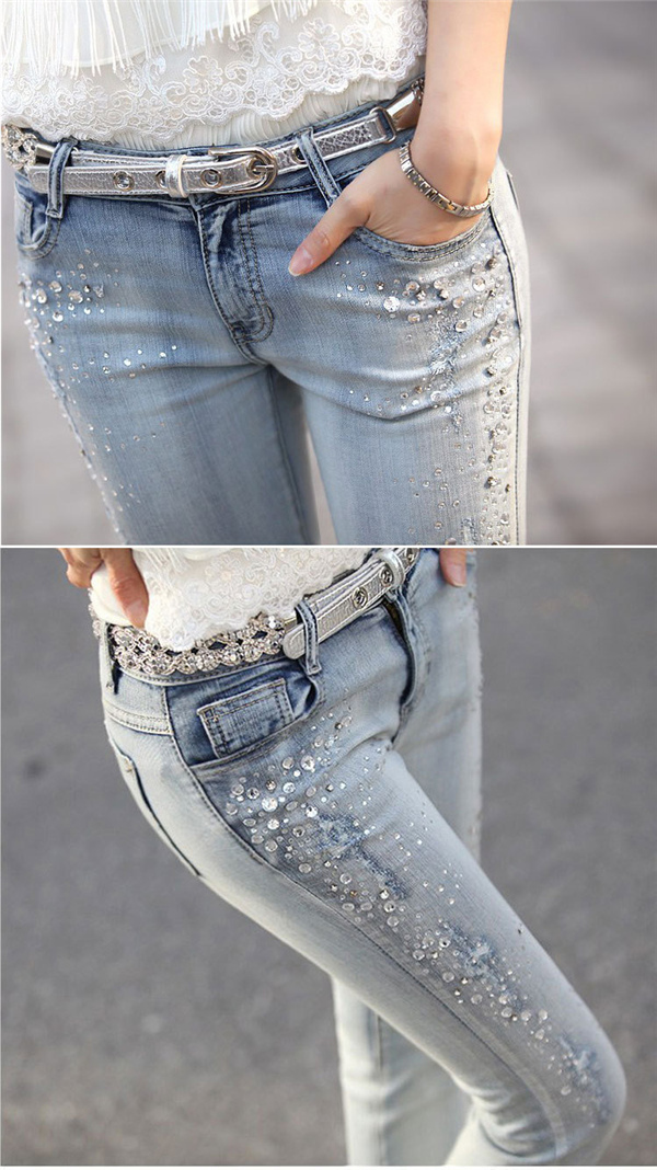 【キーワード】スキニーパンツ デニムパンツ レディース ストレッチ ダメージ キラキラ スキニージーンズ ロング丈 美脚 ボトムス スリム お洒落 可愛い