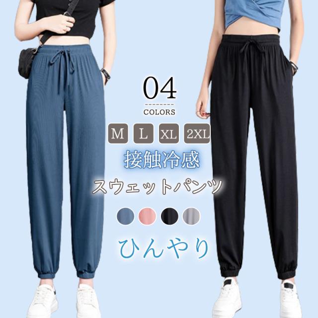 \2枚購入で200円OFFクーポン/ ジョガーパンツ レディース 接触冷感 涼しい パンツ カジュアル スポーツ 運動 汗しみ防止 トレーニング 運動会