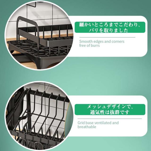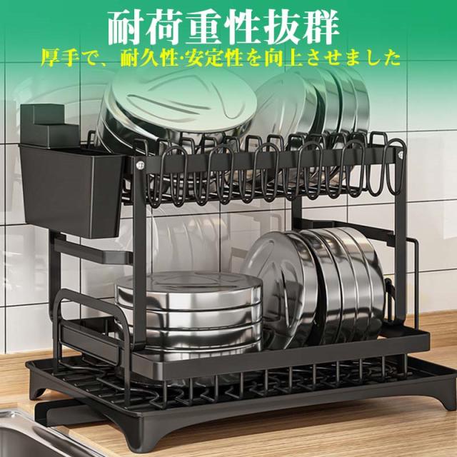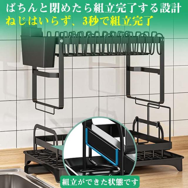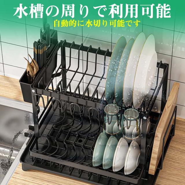 水切りラック 多機能 2段 シンク上 食器置き 大容量 水切り 水切りかご 水切りカゴ 洗い物 抗菌 台所 キッチン コンパクト 省スペース