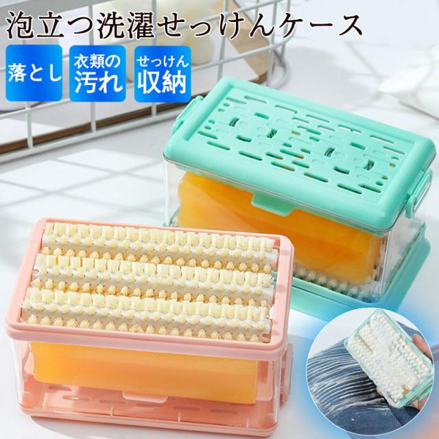 石鹸ケース ブラシ付き 泡立つ洗濯せっけんケース せっけん 石鹸 石けんケース 石けん台 ケース 泡立つ せっけん置き場 汚れ 衣類の汚れ 汚れ落とし