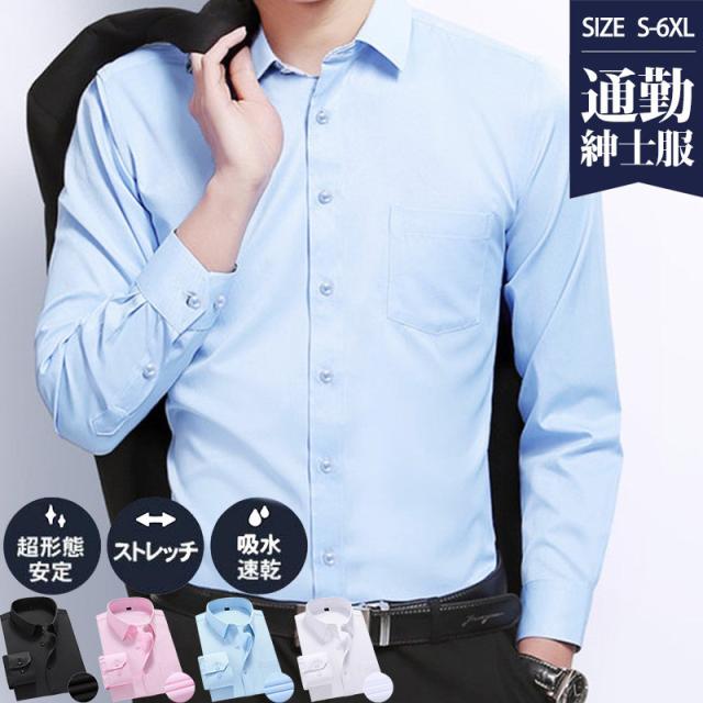 ワイシャツ メンズ シャツ 長袖シャツ スリム 細身 無地 大きいサイズ ビジネス 形態安定 フォーマル クールビズ 通勤 紳士服 結婚式 就活 仕事