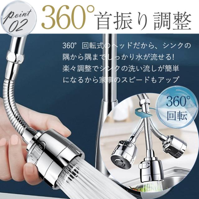 蛇口 シャワーヘッド キッチン キッチン蛇口 伸縮 360度回転 シャワー ノズル 首振り 台所 切り替え 流し 水道 キッチン用 冷温切り替え