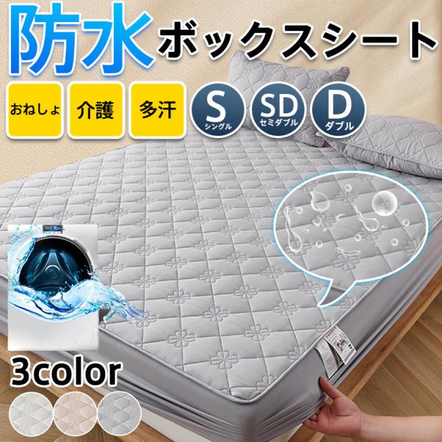 ボックスシーツ 防水 シングル セミダブル ダブル ベッドカバー 敷布団 カバー 一体型 マットレスカバー シーツ おねしょ 抗菌 通気 速乾 丸洗い