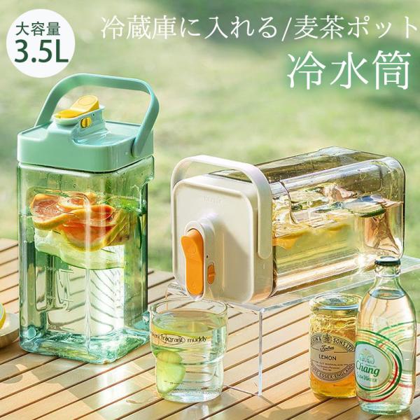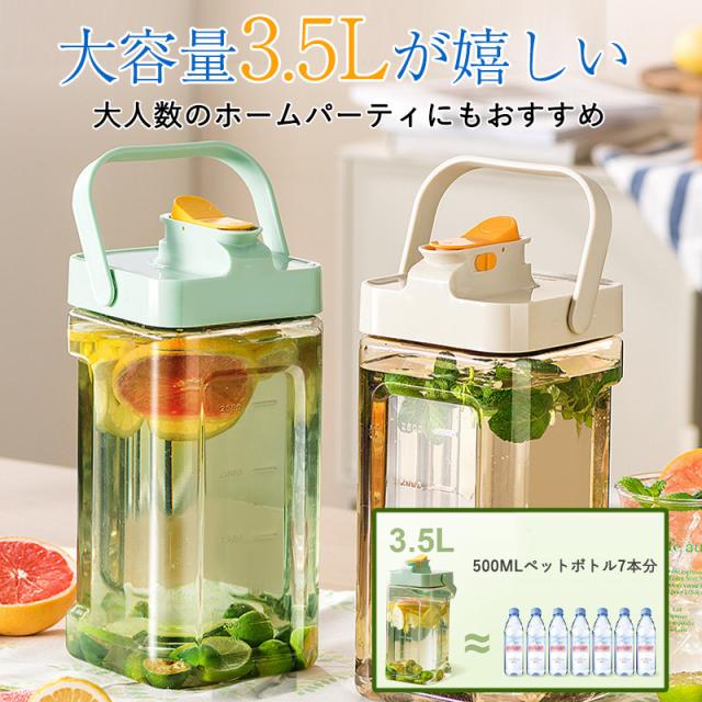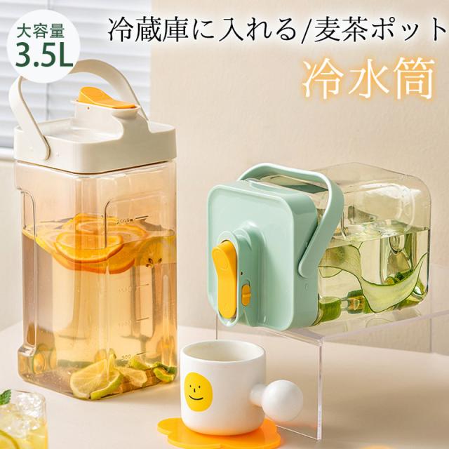 冷水筒 蛇口付き ウォーターボトル 水差し ピッチャー 横置き 3.5L 冷蔵庫に入れる 麦茶ポット お茶ポット 耐熱 大容量 漏れない 洗いやすい