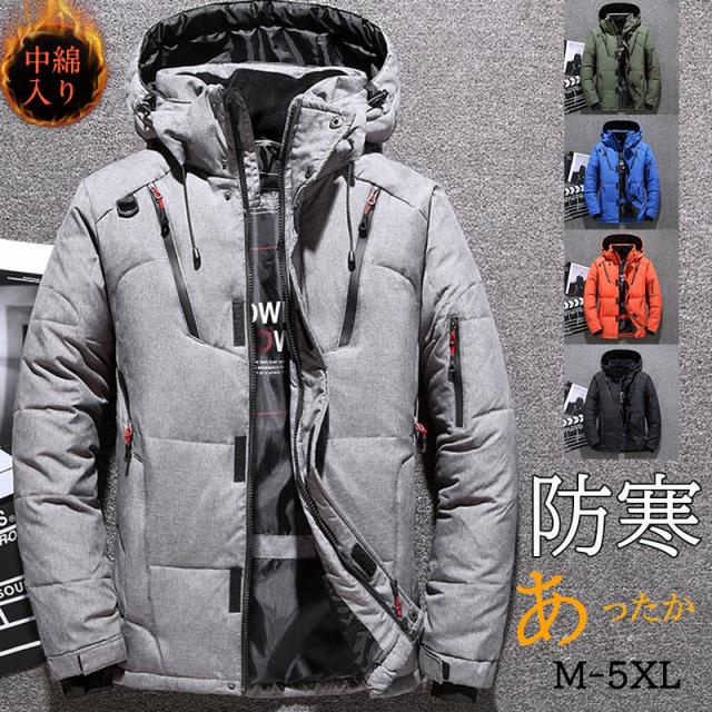 ダウンコート メンズ ダウンジャケット コート 中綿ジャケット フード付き 防寒 撥水 防風 秋冬 軽量 無地 アウトドア 通勤 通学