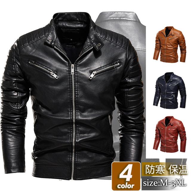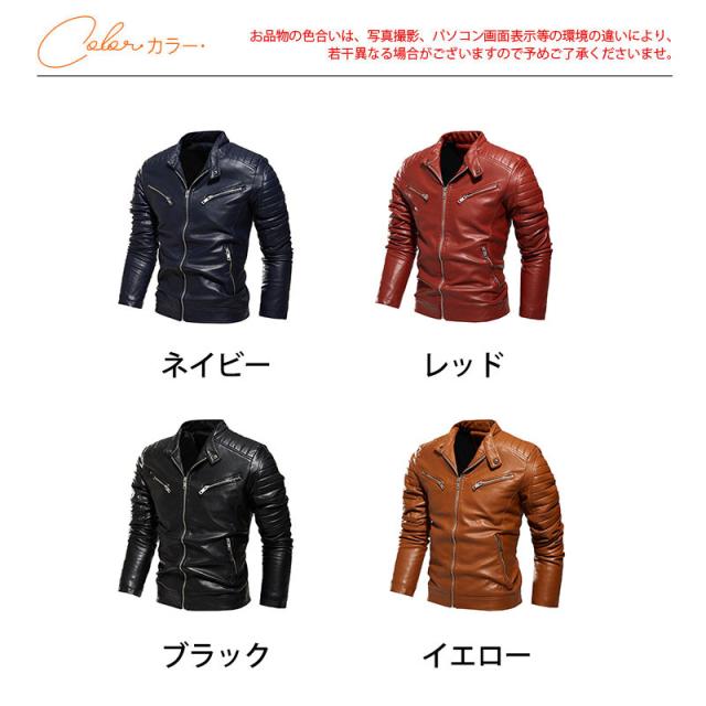 バイクジャケット メンズ ライダースジャケット 革ジャケット レザージャケット スタンド襟 立ち襟 フェイクレザー バイク 防風 PU アウター 秋