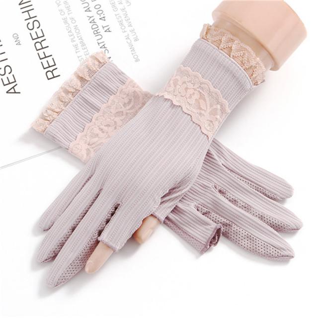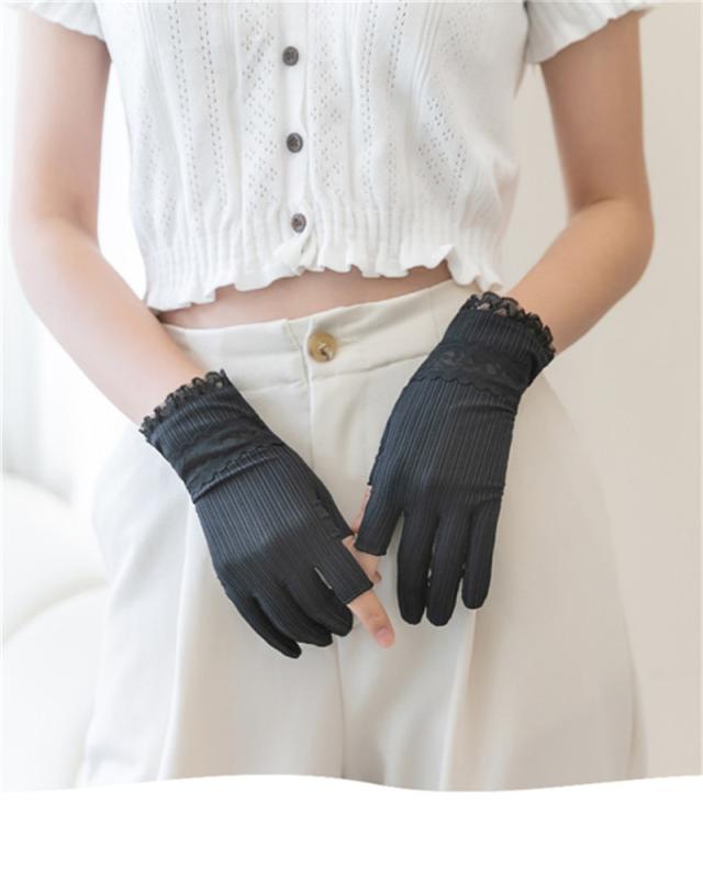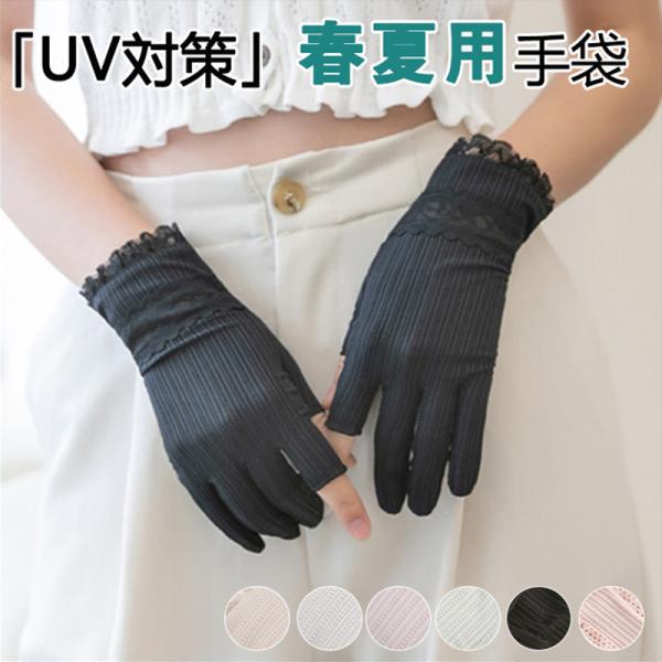 手袋 レディース UVカット 指なし 花柄 レース 手ぶくろ ショート手袋 蒸れない 滑り止め 日焼け対策 アウトドア 可愛い おしゃれ かわいい