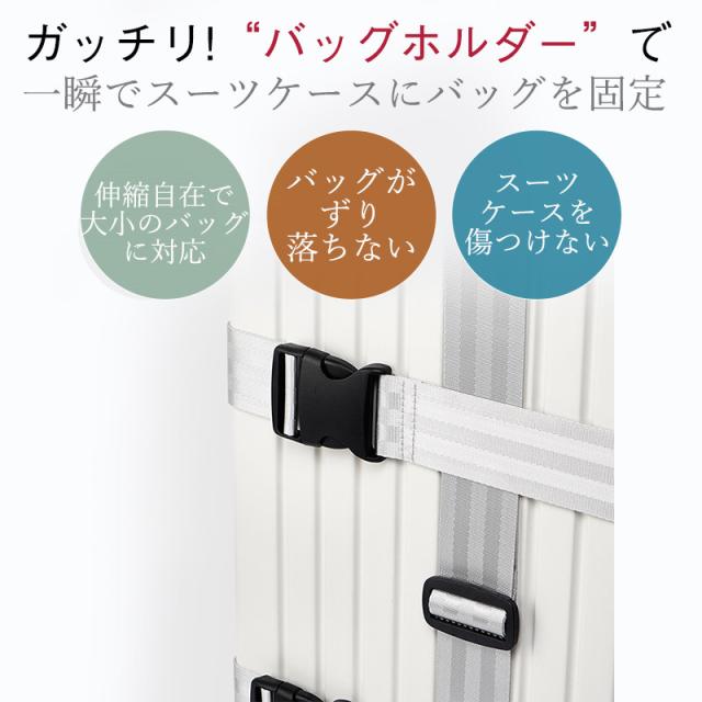 スーツケースにバッグをしっかりと固定するので落下や盗難を防ぐことができます。