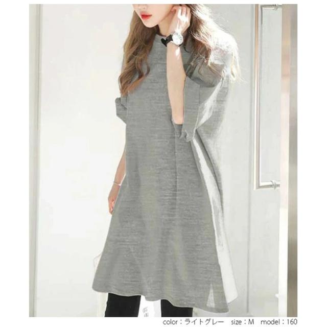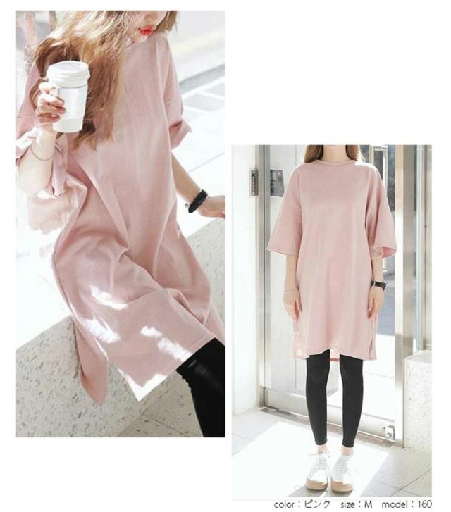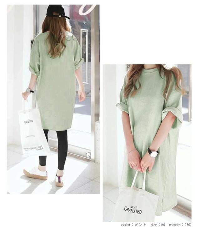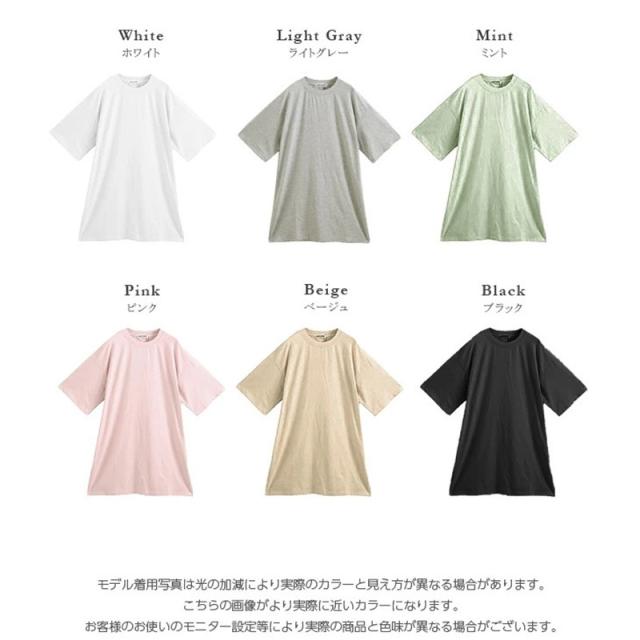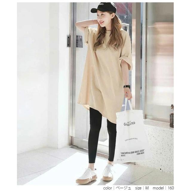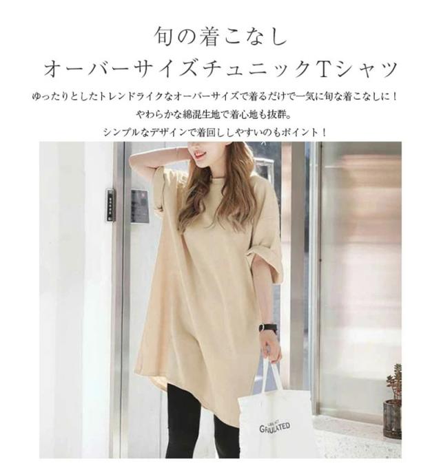 \2枚購入で200円OFF/チュニック レディース tシャツ ワンピース ロング丈 トップス オーバーサイズ 夏 ビッグT シンプル 大人 無地 ゆったり 通勤