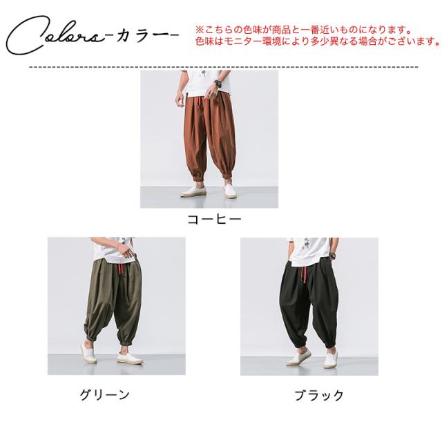 サルエルパンツ メンズ 綿麻 ズボン 長ズボン 綿麻パンツ リネン 薄手 イージーパンツ ワイドパンツ ルームウェア 部屋着 アンクルパンツ ウェストゴム ワイドパンツ 九分丈 チノパン 涼しい バギーパンツ エスニック テーパードパンツ テー カジュアル 大きいサイズ