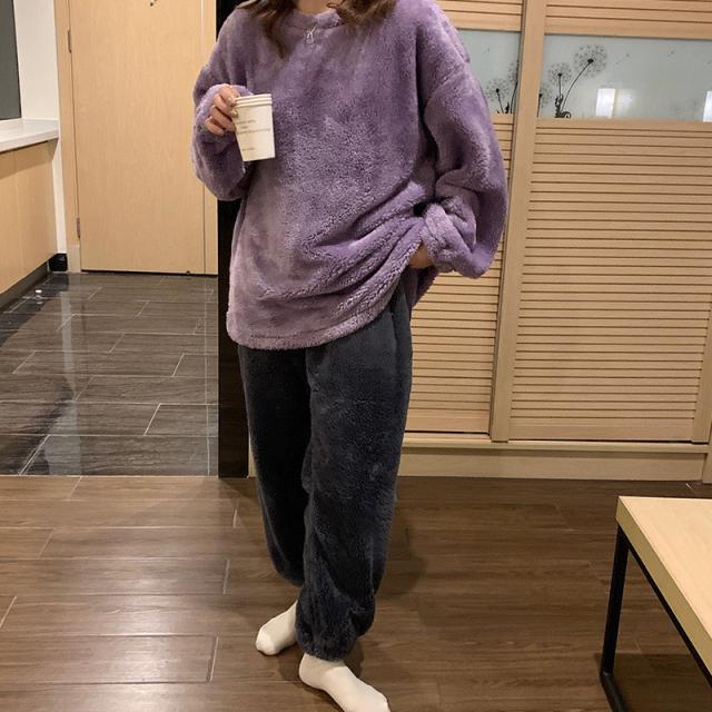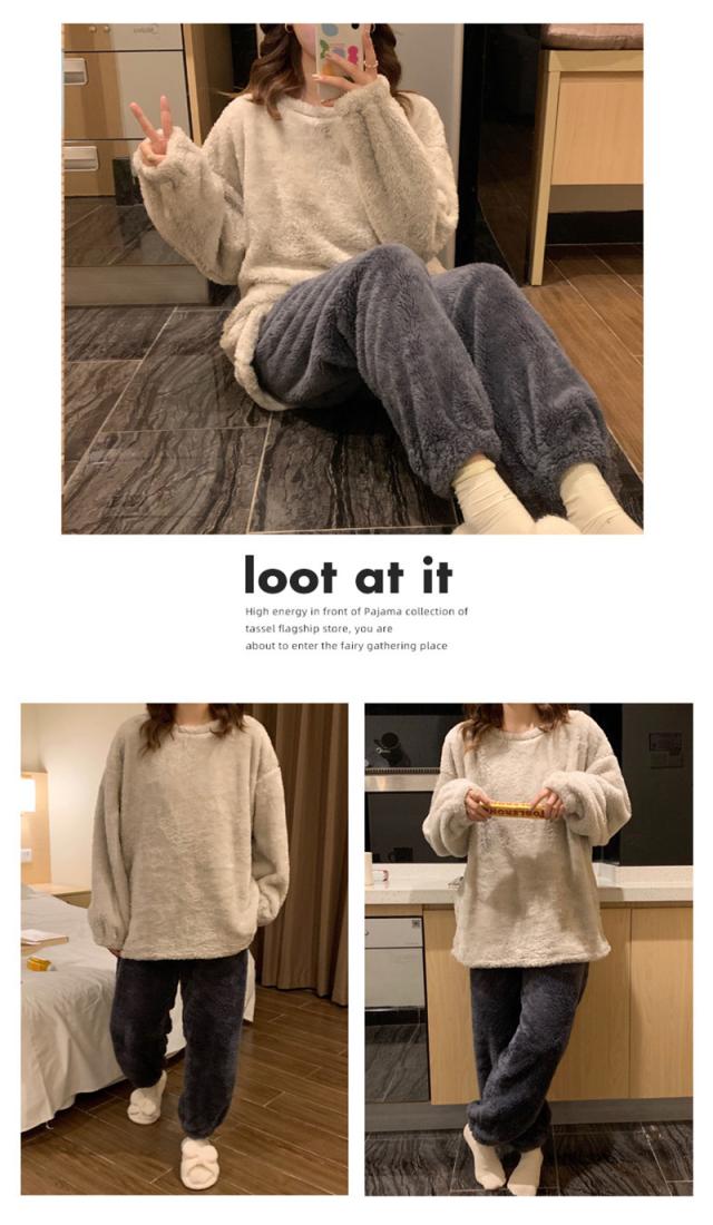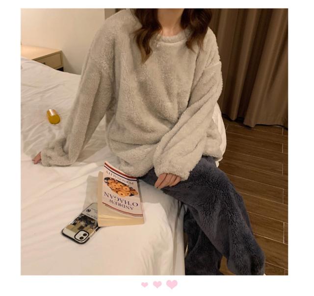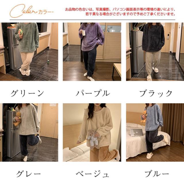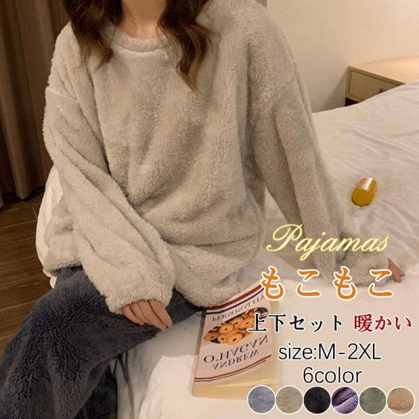 パジャマ ルームウェア レディース もこもこ ボア 裹起毛 ゆったり 部屋着 長袖 上下セット 暖かい 防寒 ナイトウェア 秋服 冬物 ふわふわ