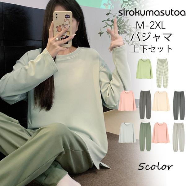 パジャマ ルームウェア レディース セットアップ 無地 ゆったり 部屋着 長袖 上下セット 可愛い 寝巻き ナイトウェア 柔らか 吸汗 通気