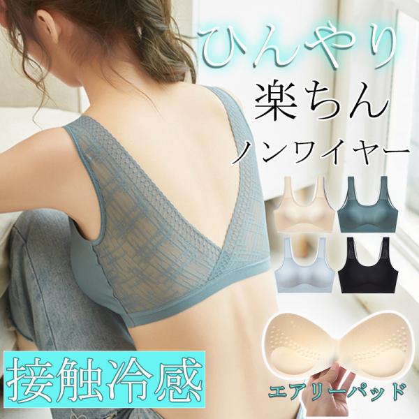 【1枚999円!2枚購入&クーポン利用で 】ノンワイヤー 冷感 ブラ 背中開き バックオープン 下着 レディース インナー 接触冷感 冷感 涼しい