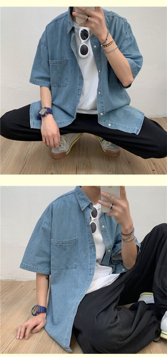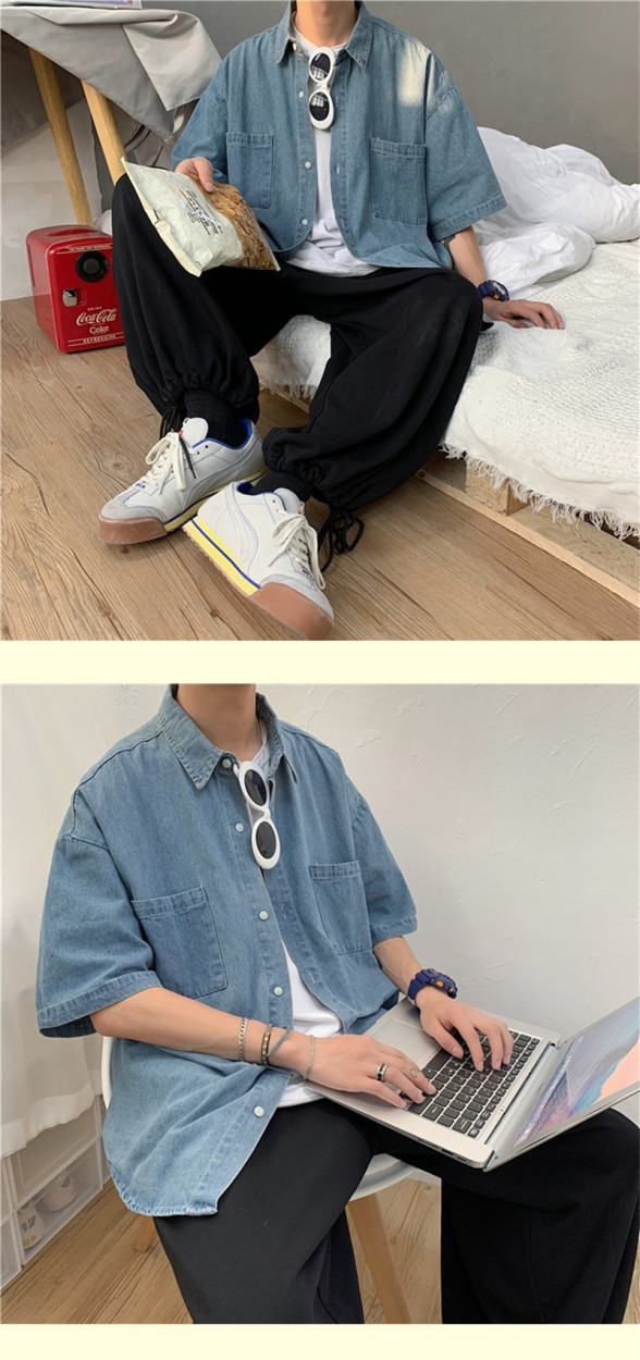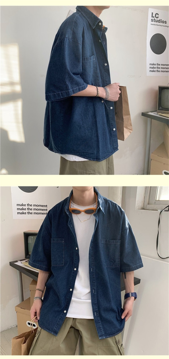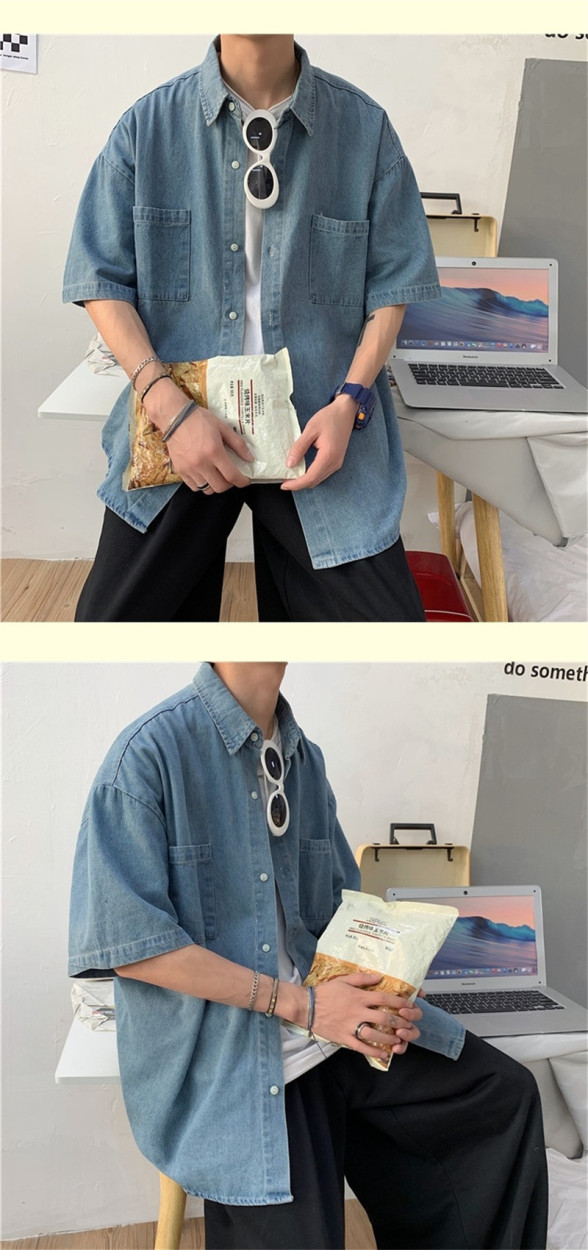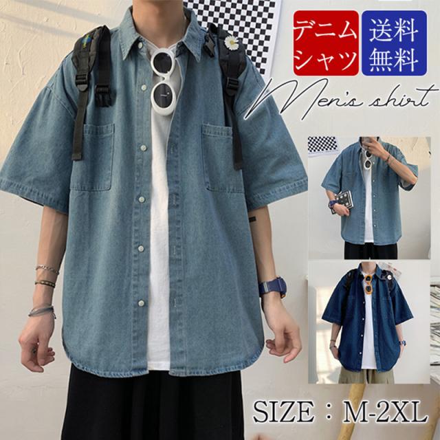 一部即日発送 デニムシャツ メンズ デニム シャツ 半袖 ジャケット アウター Gジャン ジージャン 開襟シャツ 夏 カジュアルシャツ ゆったり