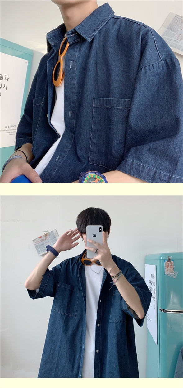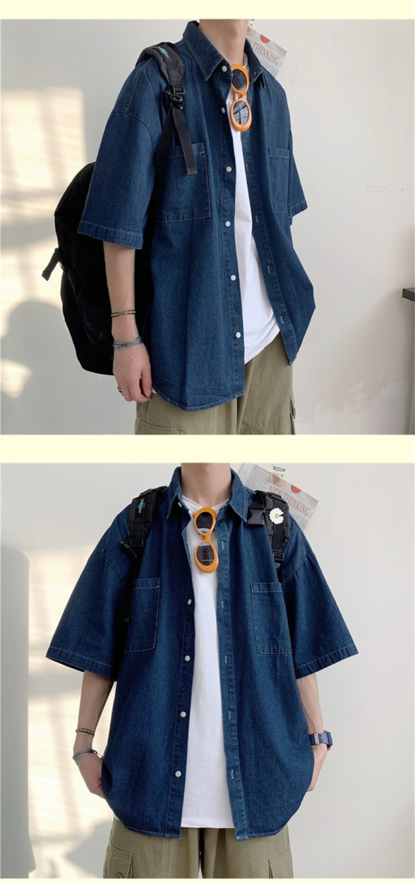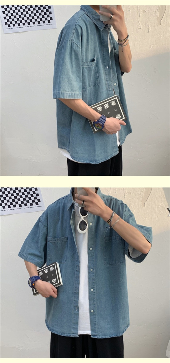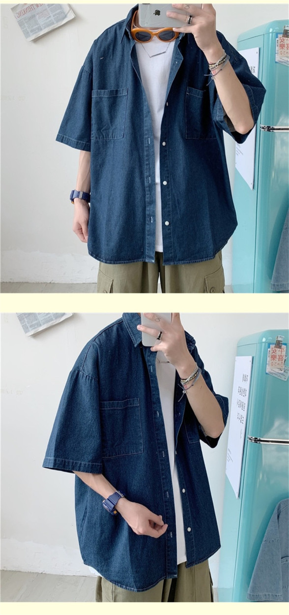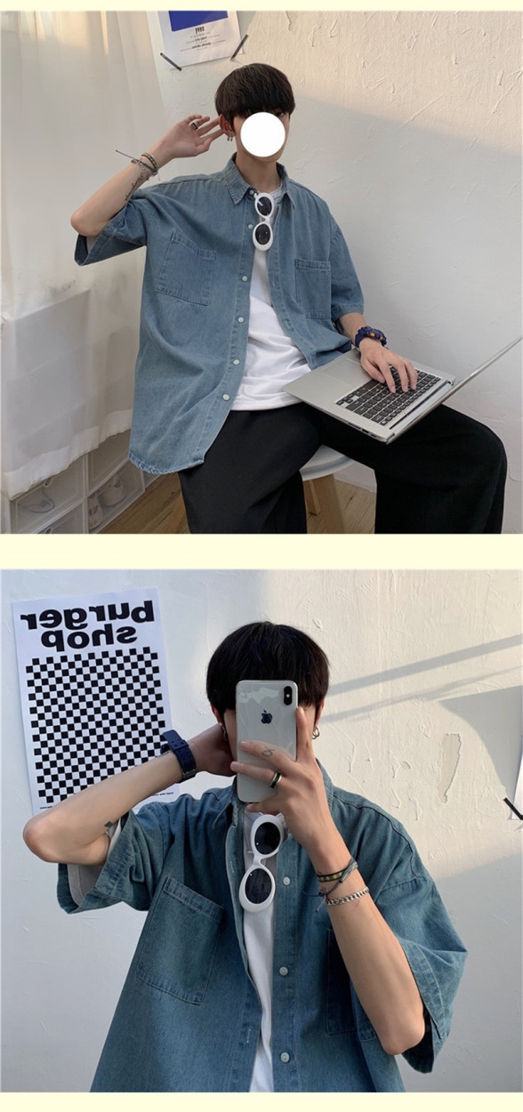 高品質加工 デニムシャツ メンズ カジュアルシャツ 半袖 七分袖 5分袖 無地 通学 通勤 トップス ダンガリー ウエスタン ウエスタンシャツ 開襟 メンズファッション 男性用 20代 30代 40代 50代 ビジネスシャツ 大きいサイズ ダメージ スリム ストレッチ ゆったり インディゴ ジージャン 紳士服