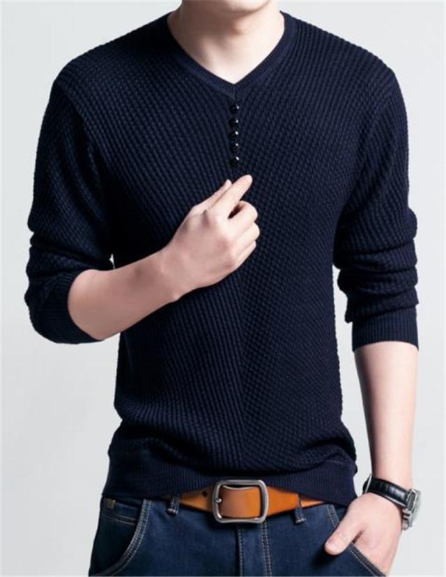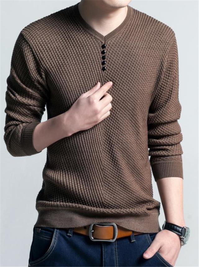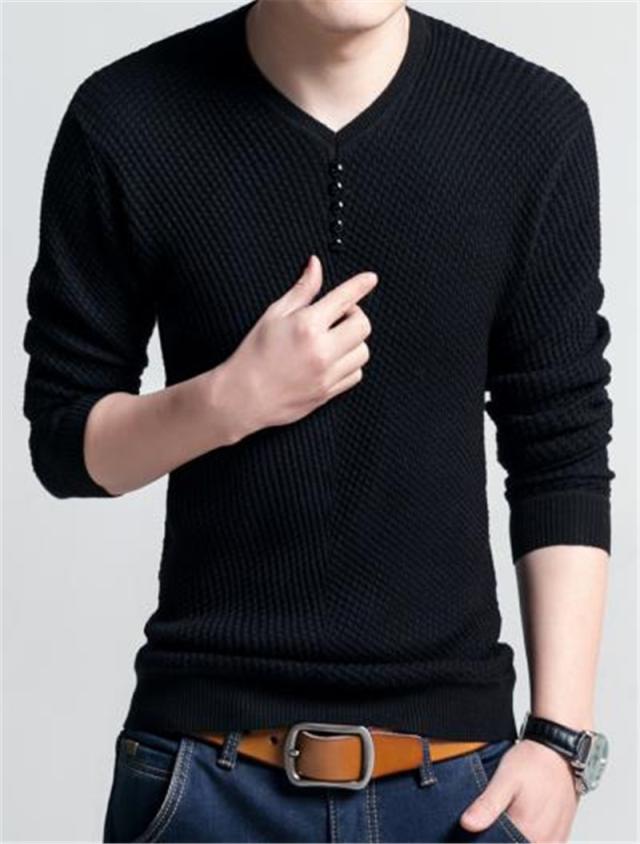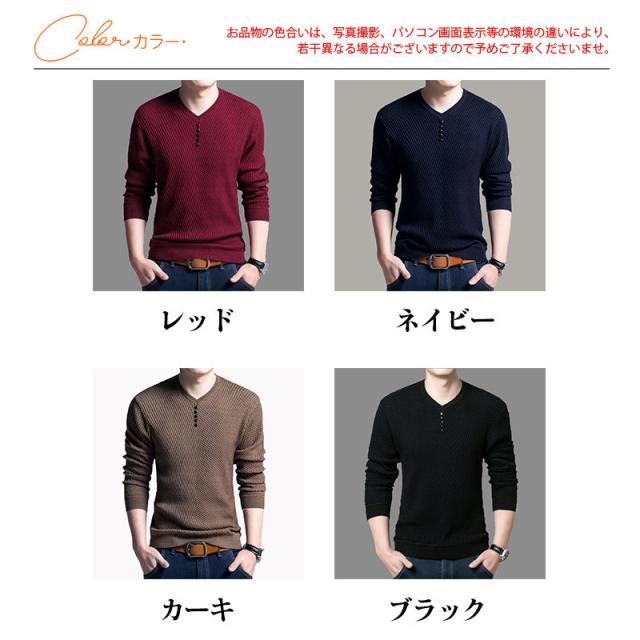 ニットセーター メンズ vネック 長袖 薄手 トップス フェイクボタン ゴルフウェア プルオーバー 無地 春 紳士服 かっこいい