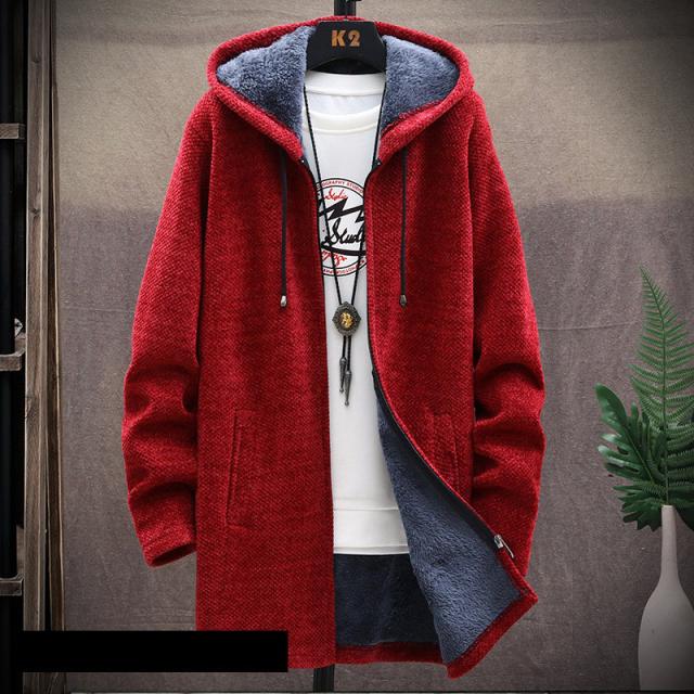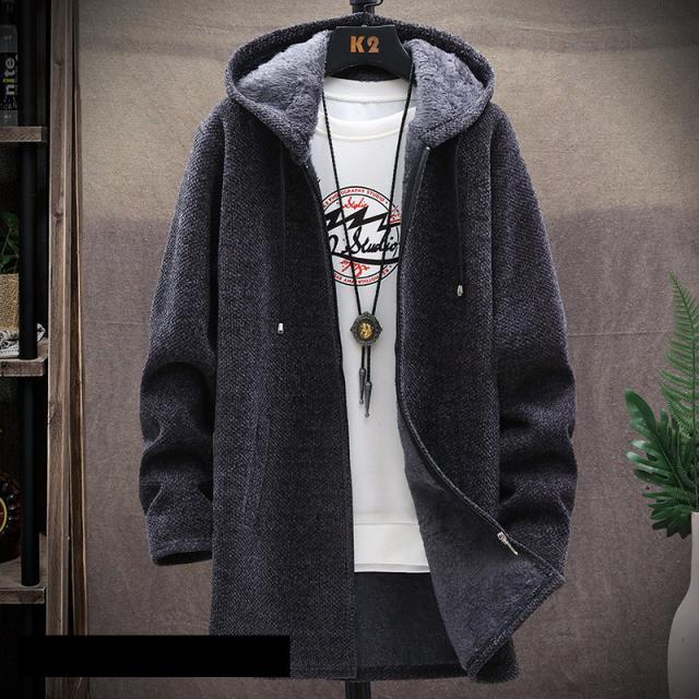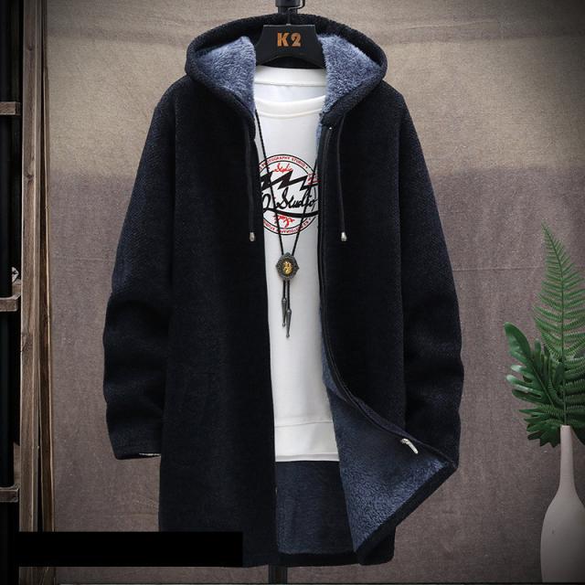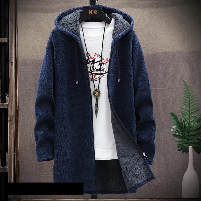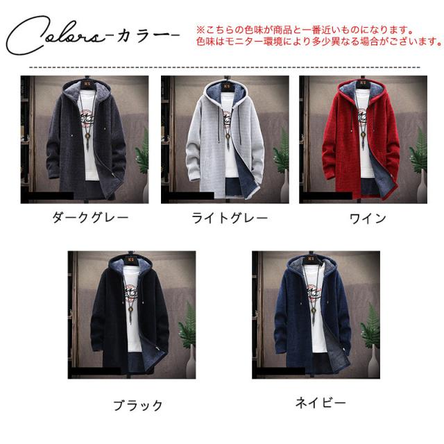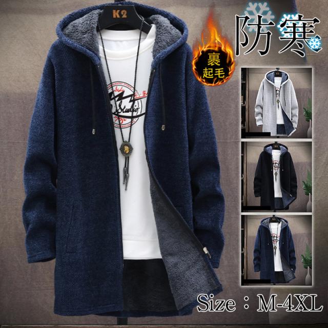 ゴルフウエア メンズ ゴルフジャケット パーカー ニットパーカー ロング フード付き カーディガン ニット セーター 裹起毛 ボア 厚手 トップス ジップアップ
