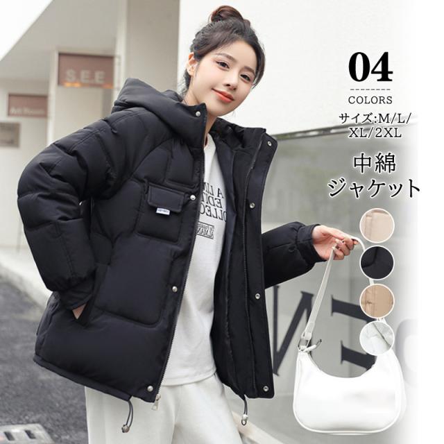 中綿コート レディース ダウンジャケット 中綿 ダウン ショート フード付き アウター シンプル 防寒 厚手 あったか おしゃれ 可愛い