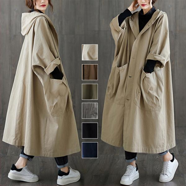 トレンチコート レディース スプリングコート ロング フード付き チェスターコート 春 マウンテンパーカー 大きいサイズ シンプル 大人 アウター