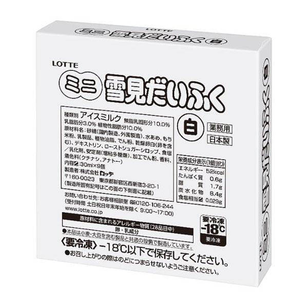 コクのあるバニラアイスを「弾むぷにぷにモチ」で包んだ、ミニサイズのだいふくアイスです。バニラアイスをおもちで包んだアイスです。1回の送料で 数量16 までお届け可能です。 内容量:30ml×9 【冷凍便】