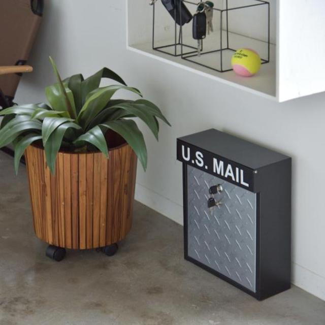 ●蓋部分をチェッカープレートデザインにした、インダストリアルテイストのポスト。●投函口は幅26cm×高さ3cmと十分な広さを持っています。●付属のカギを使ってポストの中身を取り出すタイプなので、投函された物が勝手に取り出されるという心配もありません。●蓋は上部のロックを解除して手前に開く縦型式なので、開けたと同時に中の物が落ちてしまうという事もなく安心。