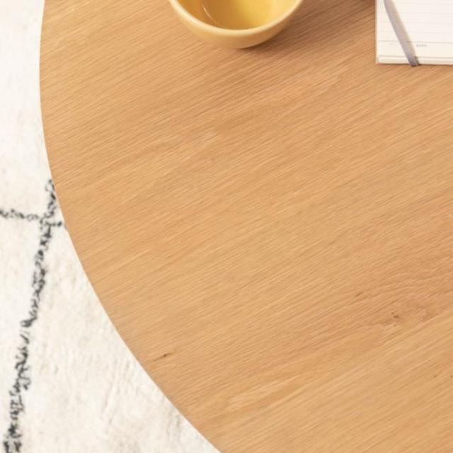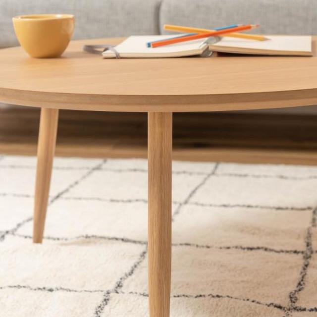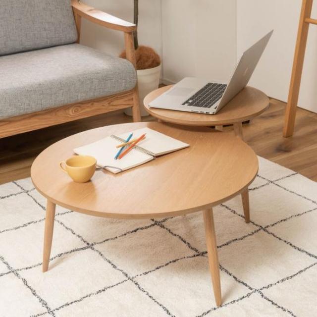 ●いろいろな使い方ができ、ナチュラルな空間を演出する2typeのラウンドテーブル。●木目が美しいホワイトオークを使用。清楚感があり上品な色味と木目が特徴で、ナチュラル系インテリアの代表的な材として、オーク材の魅力を活かしたシンプルなデザイン。●それぞれ、サイドテーブルやリビングテーブルとして使用するほか、SサイズとLサイズを組み合わせてネストテーブルとして使用すれば、リビングの空間もインテリア性が高く仕上がります。●また、シンプルで細い三本の脚がテーブル全体をコンパクトに、足元をすっきりと広くみせてくれます。