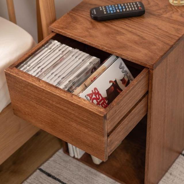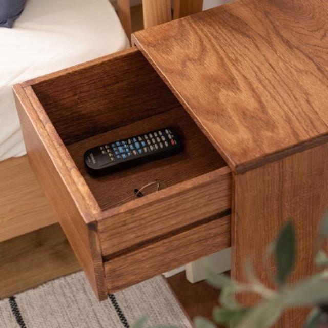 ●オークの木目が美しい、存在感のあるサイドチェスト。●個性豊かなホワイトオークのハギ材を使用した、飽きのこないデザインのチェスト。●ベッドやソファの横に最適なサイズで、縦長のシンプルなフォルムがすっきりとしたお部屋を演出します。●引き出しは収納に最適な深さと奥行で、見せる収納と隠す収納の両方としてお使いいただけます。
