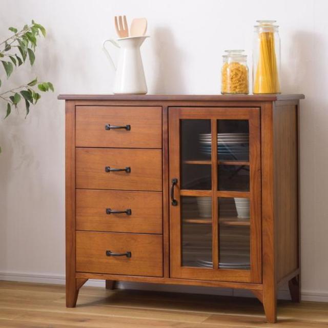 キャビネット ティンバー ブラウン W80×D40×H75 ミンディ材 天然木 アンティーク スリム 省スペース 小さめ 黒アイアン 収納 扉付き 棚付き 引き出し付き ガラス扉 おしゃれ 模様替え azu-pm-320 店舗 カフェ ラウンジ ロビー ホテル 法人 キャビネット コンソール 収納