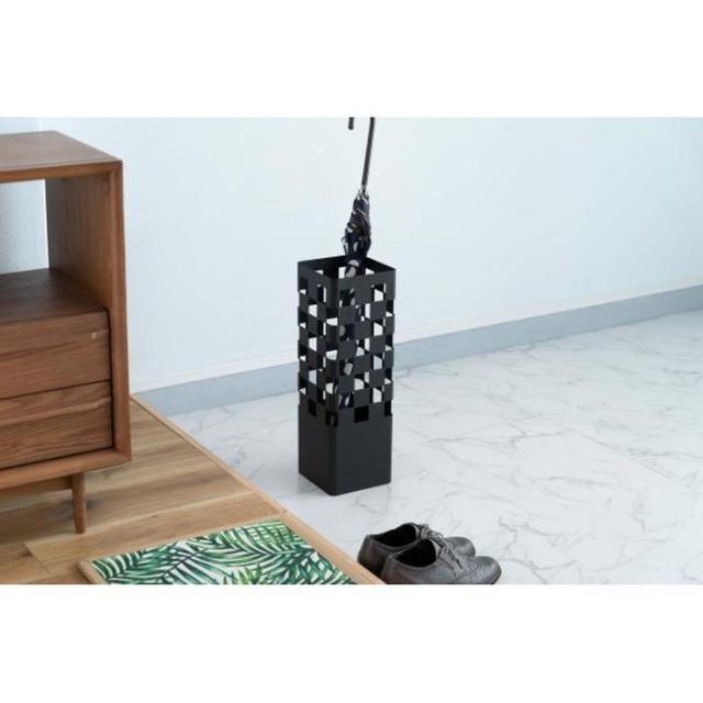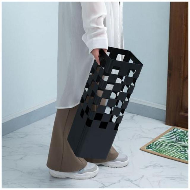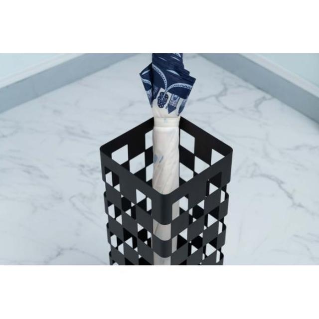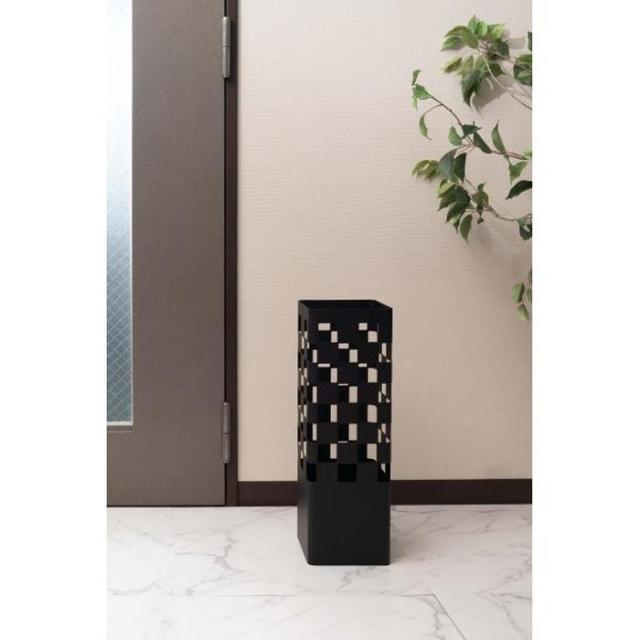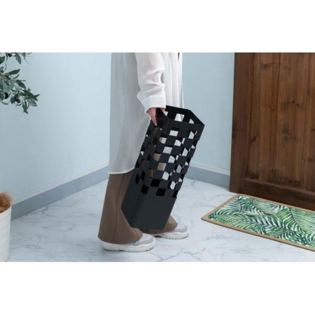 ●スタイリッシュなチェック模様のシンプルな傘立て。●デザイン性溢れる形は置くだけで玄関のアクセントに。●狭いスペースでも置きやすいスリムな形状なので場所をとりません。●底面には取り外しが出来る水受けトレーが付いているので、お手入れが簡単でいつでも清潔。●チェック模様の穴が開いているので通気性が良く、湿気がこもらないのも嬉しいポイント。●本体重量は1.5kgなので安定感があり、持ち運びにも便利な丁度良い重さ。
