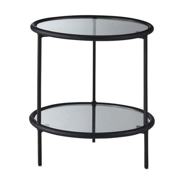 ラウンド ガラス テーブル 2D ブラック W38×D38×H38.5 円形 ガラステーブル センターテーブル サイドテーブル ラウンドテーブル ガラス アイアン インダストリアル モダン シンプル おしゃれ クリア ブラック 黒 ネストテーブル 棚 ディスプレイ 2段 ナイトテーブル 強化
