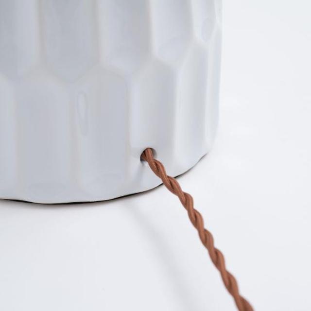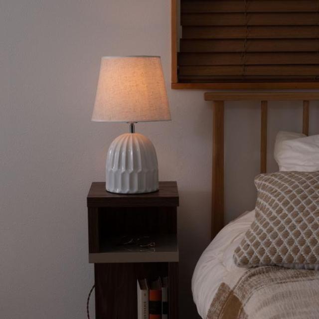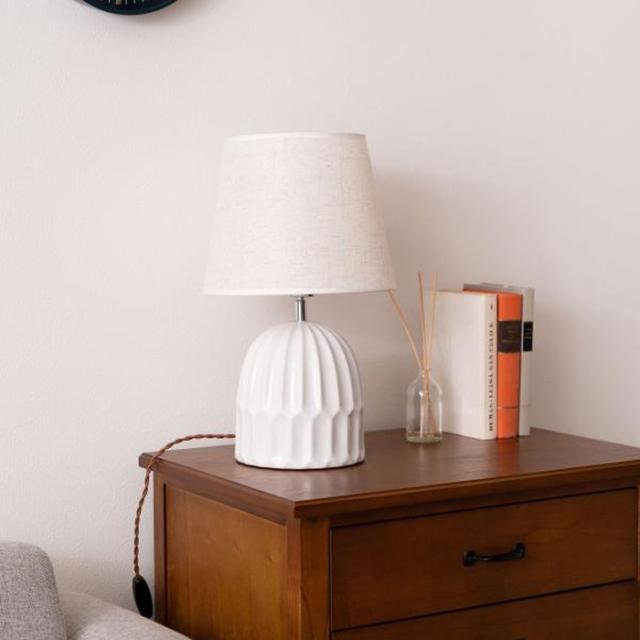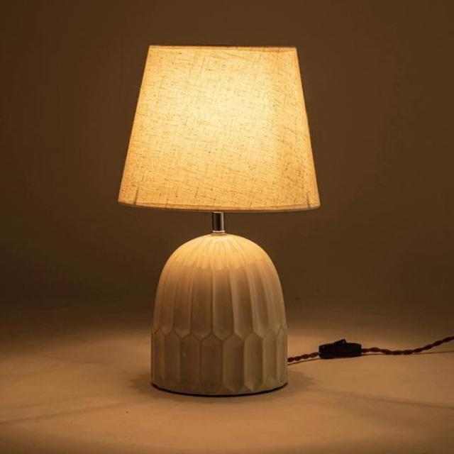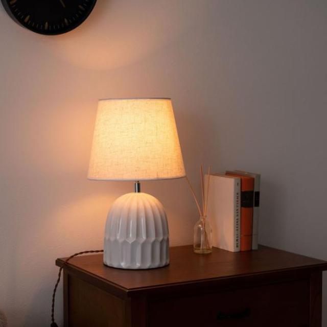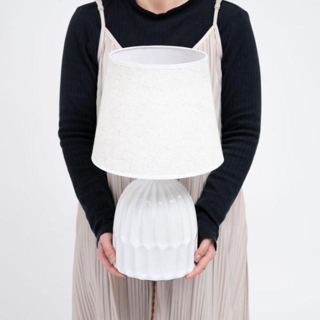 ●ありそうで無かった「陶器+ファブリック」の組合わせがお洒落なテーブルライト。●デスク上ではもちろん、ソファサイド・ベッドサイド等いろいろな場所で活躍。●シェードは角度を調整する事が出来るので、間接照明としてだけでなく、補助灯としても使えます。●読書タイムの空間を落ち着かせてくれるだけでなく眼にも優しいので、おやすみ前のリラックスタイムにもぴったり。●リラックスタイムが終わったら、手元のスイッチですぐに消灯できます。●テーブルライトは夜間だけでなく、日中のインテリアにも最適。ちょっと物足りなかった空間も、置くだけでグレードアップ。●テーブルライトをお部屋に取り入れて日々の生活をワンラックUP。