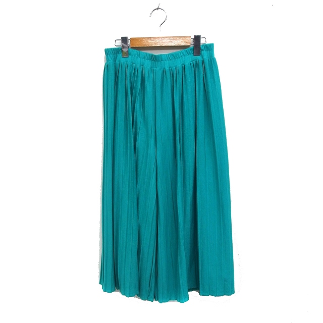 【中古】サンカンシオン 3can4on プリーツ ガウチョパンツ ワイド 無地 2 エメラルドグリーン 緑 /FT19 レディース