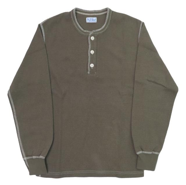 フラットヘッドのサーマル生地のヘンリーネックサーマル。