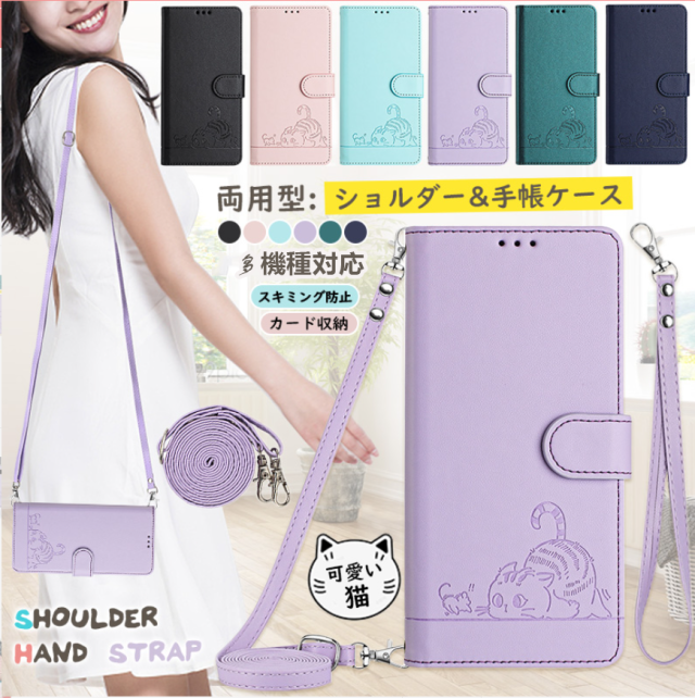 iPhone XS Max XR XS X ケース アイフォン SE3 SE2 ケース iPhone 12ProMax スマホケース 耐衝撃 iPhone 16E ケース ショルダー iPhone 11 Pro Max ケース iPhone 12Pro ケース iPhone 12 Mini 手帳型ケース 猫 ネコ ショルダーと手首ストラップ付き