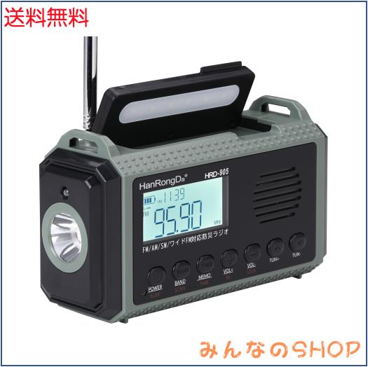 HanRongDa 防災ラジオ 短波/AM/FM/ワイドFM対応 充電式 懐中電灯 ソーラー/手回し/USB-C充電 乾電池給電 デジタル時計/タイマー/SOSアラ