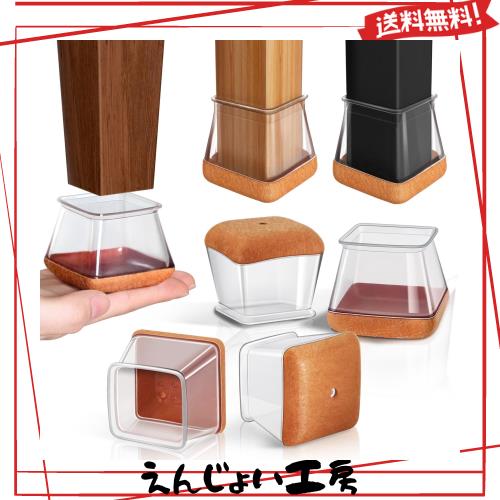 椅子脚カバー四角 椅子の脚カバー椅子脚カバーシリコン 家具足 傷防止 防音 滑り止め 角脚用フェルト巻16個 透明 XL-43~50mm